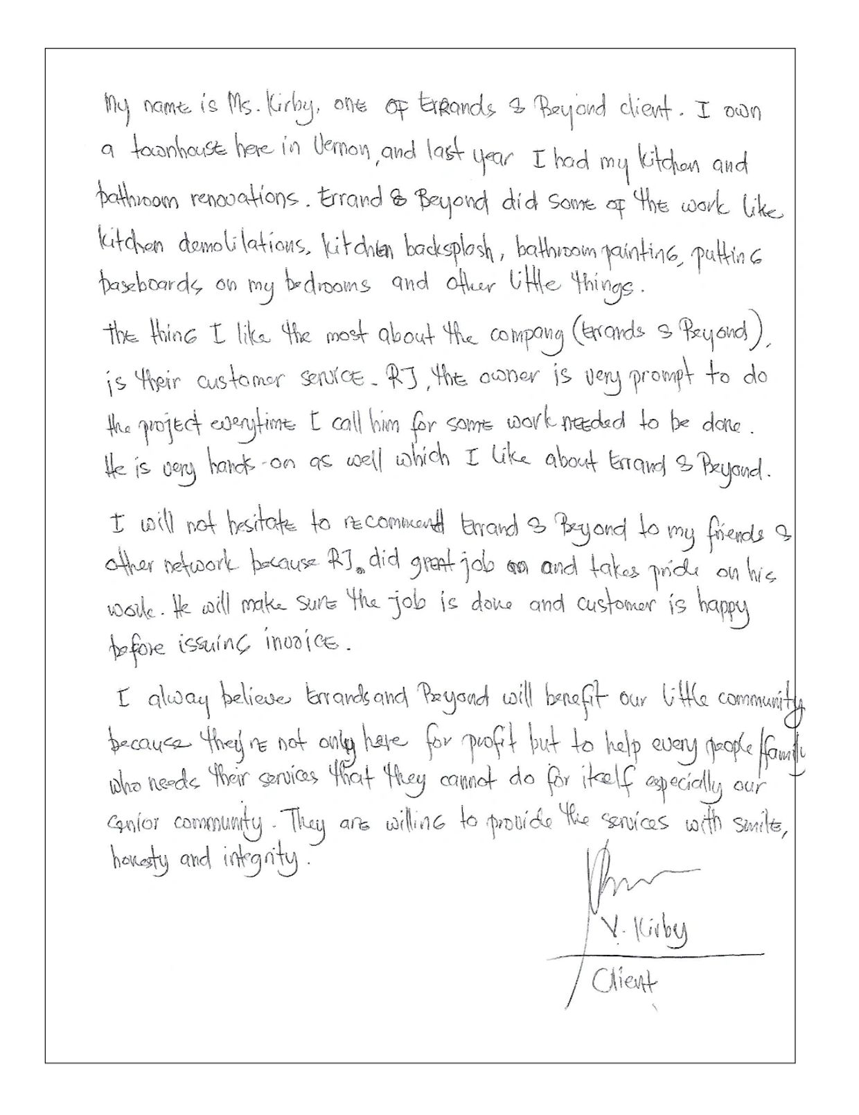 "Thank you so much RJ. You did such a wonderful job. The work was nicely done."